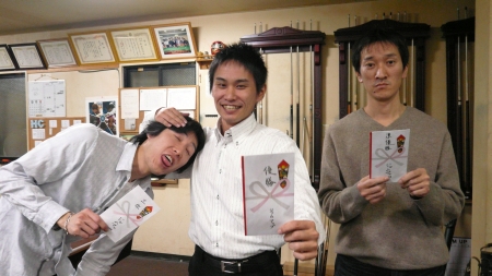 12月度月例会の優勝は光嶌さんでした♪今年5回目の優勝、おめでとうございます!!優勝:光嶌さん(JAM UP)準優勝:弘田プロ(JPBA)3位:屋敷さん(JAM UP)【日時】 平成21年12月19日(土)【参加】 22名【終了】 2:45am