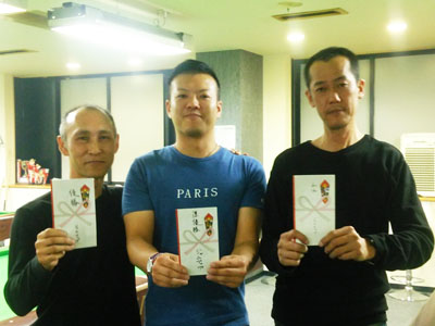 2014年9月度月例会の優勝は 須増信行選手でした♪ おめでとうございます!! 優 勝:須増さん 準優勝:松原さん 3 位:上田さん 【日 時】 2014年9月20日(土) 【参加人数】 14名 【終 了】 23:40