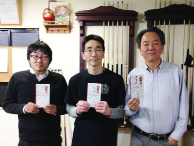 2014年11月度月例会の優勝は 友野英夫選手でした♪ おめでとうございます!! 優 勝:友野さん 準優勝:清水さん 3 位:福光さん 【日 時】 2014年11月15日(土) 【参加人数】 8名 【終 了】 0:10